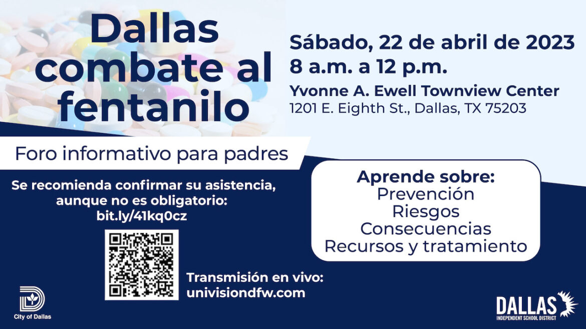 The City of Dallas is partnering with the Dallas Independent School District and the Dallas Opioid Strike Force partners to host “Dallas Fights Fentanyl”, a bilingual educational forum on the dangers of Opioids and Fentanyl.
